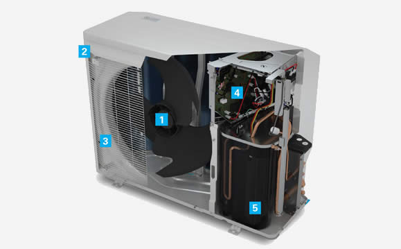 It’s a side-discharge inverter heat pump designed to save space, reduce noise, and cut energy bills.